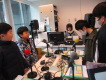 緊急放送に耳を傾け、放送の指示を聞いて速やかに避難する子どもたち。