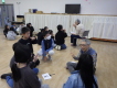 3〜6年生は毛筆です。温かく広い集会室で練習をしていました。