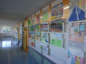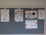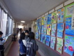 子どもたちは協力し合い、考えています。廊下には各クラスのポスターが