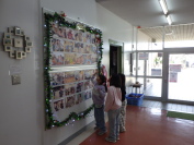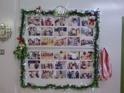 玄関前にある掲示板(子どもたちの写真コーナー)がクリスマス特別