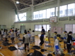 写真は、朝のつどいでのラジオ体操の様子。