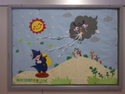 名作「北風と太陽」の素敵な掲示物です。また、学校敷地内の冬囲いを