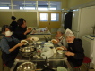 グラウンドゴルフで気持ちの良い汗を流した後は、お昼ごはんです。メニューはタレカツ丼。みんな、美味しそうにモグモグ食べています。