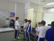 いますが、子どもたちにとってはドキドキの瞬間です。保健室前の廊下に
