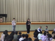 昼休み後に全校集会が行われました。今日は、各学年の代表児童が