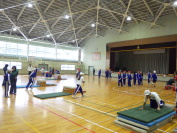 元気に体育館でマットや跳び箱で体を動かしています。自分のめあて