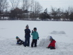 天気が落ち着いた今日は、1年生が雪遊びをしていました。