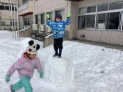 雪だるまを作ったり、雪の中で寝そべったりと思い思いに雪に親しんで